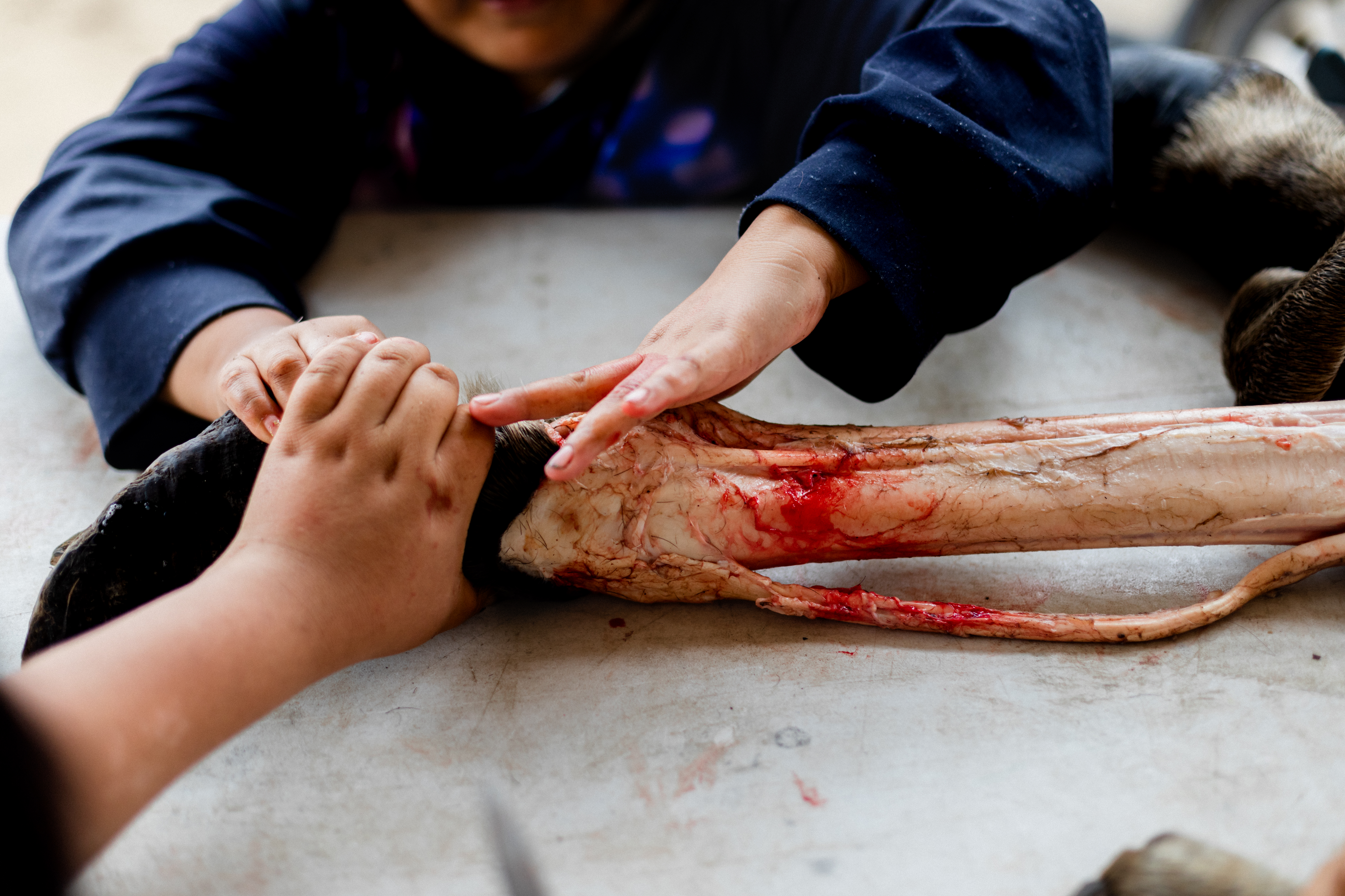 - Plan rapproché: Myley retire la peau d’une patte d’orignal sous la supervision de Grace Ratt.