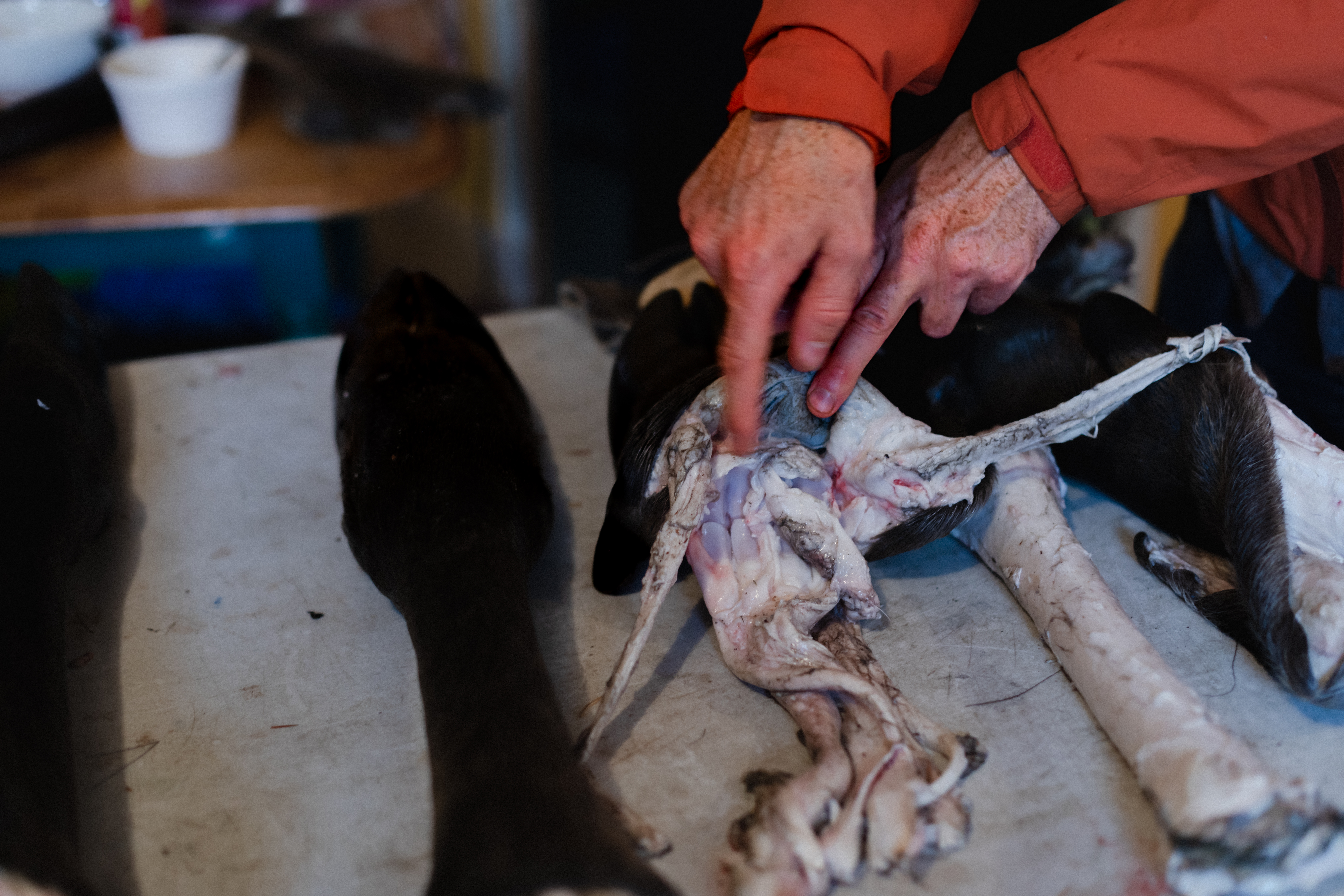 - Serge Bordeleau observe la constitution du pied de l’orignal (os et articulation).