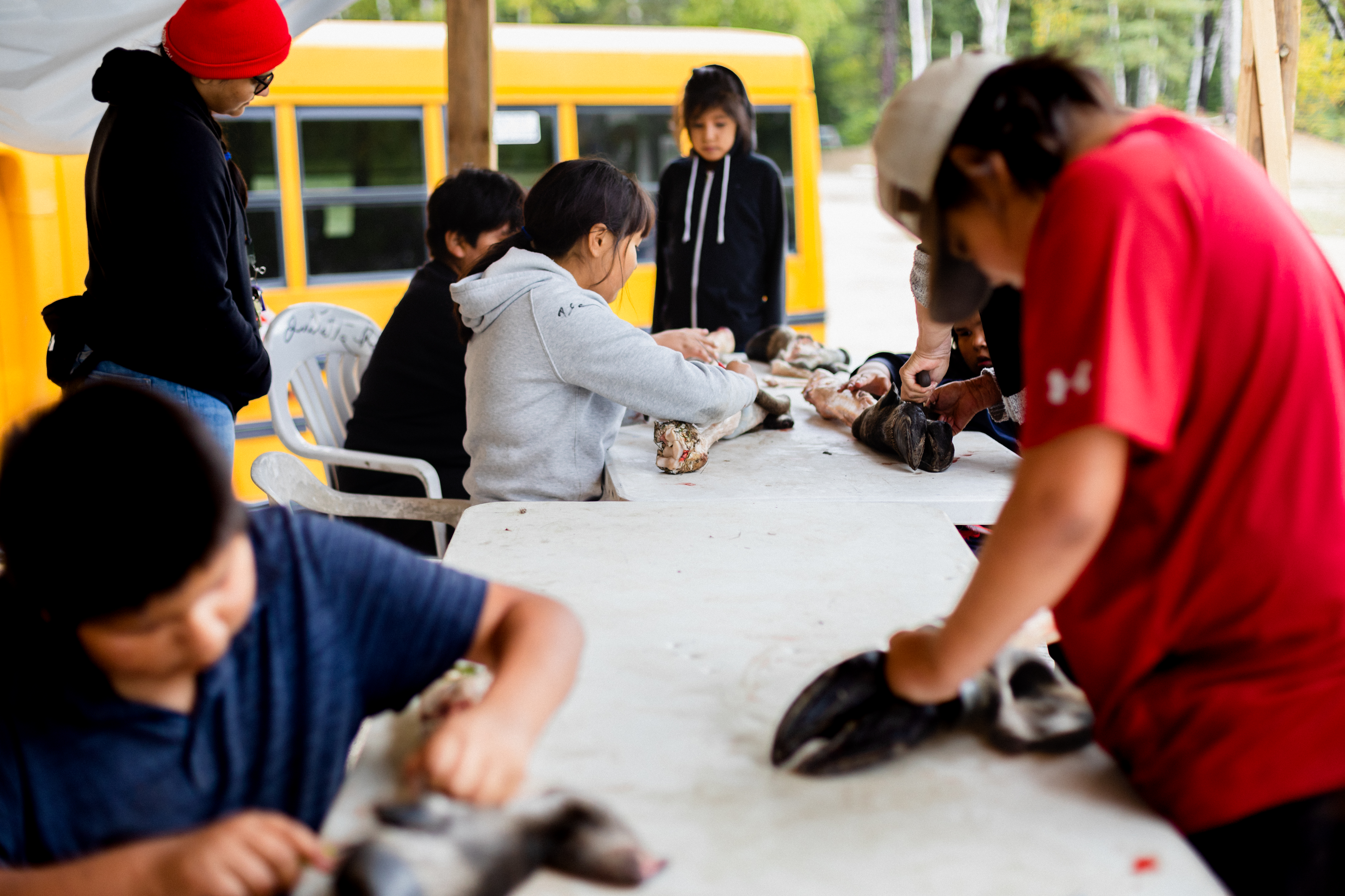 - Une classe de l’école de Kitiganik participe à un atelier de dépeçage de pattes d’orignal au site culturel « CIP » sous la supervision de Grace Ratt.