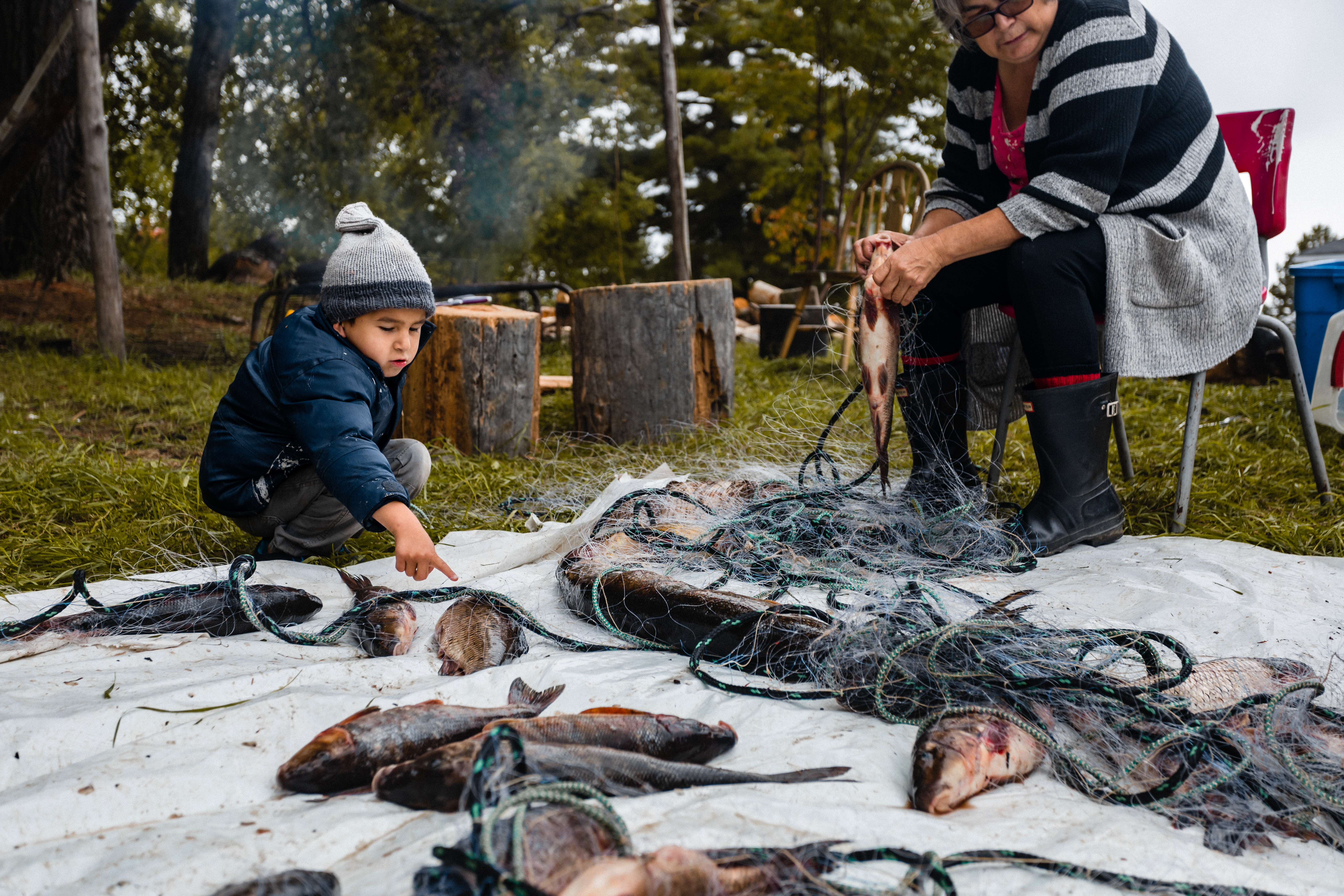 - Cayde observe Grace Ratt tandis qu’elle dégage des poissons d’un filet.