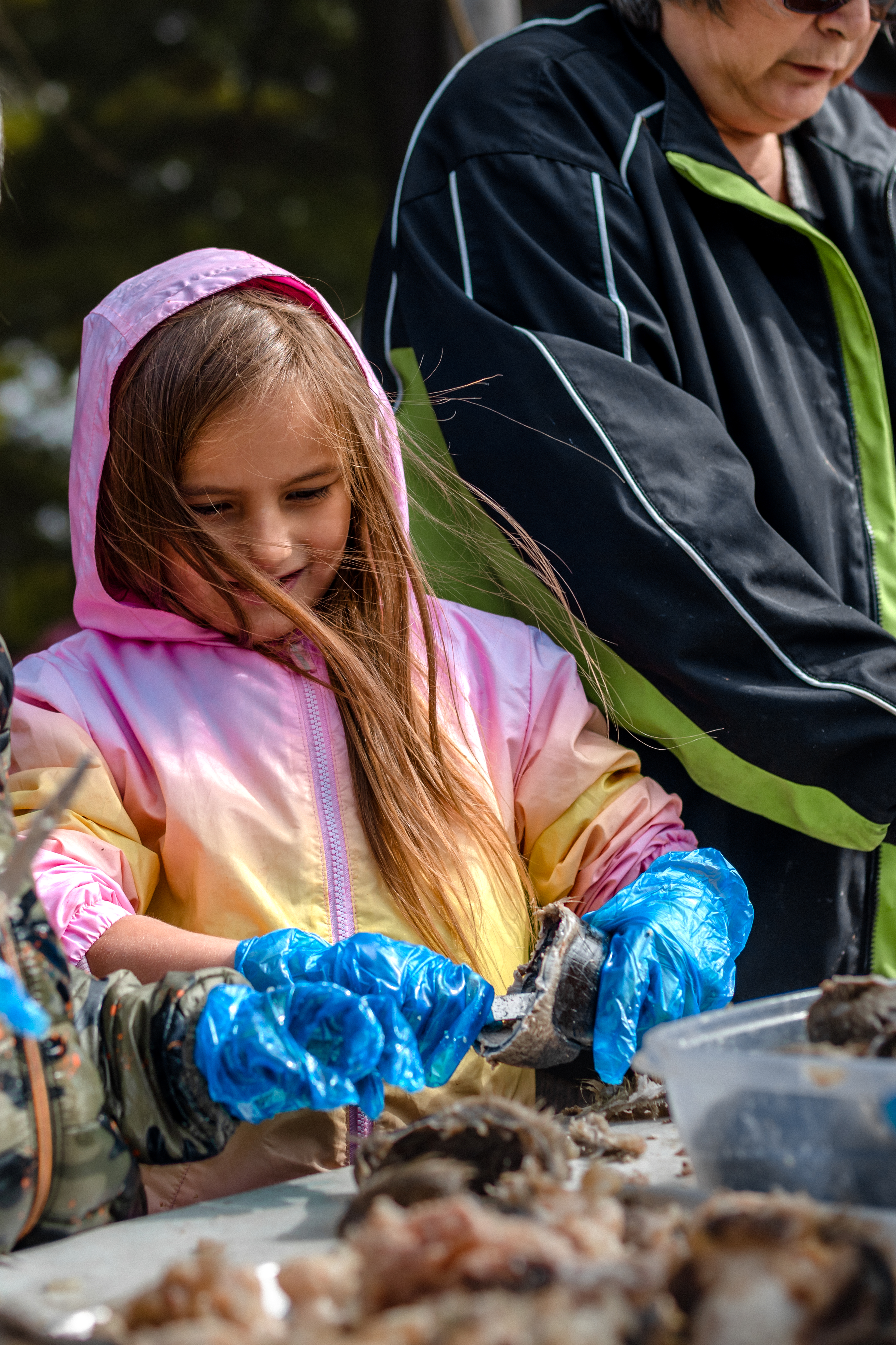 - Journey évide l’intérieur d’un sabot d’orignal à l’aide d’un couteau.