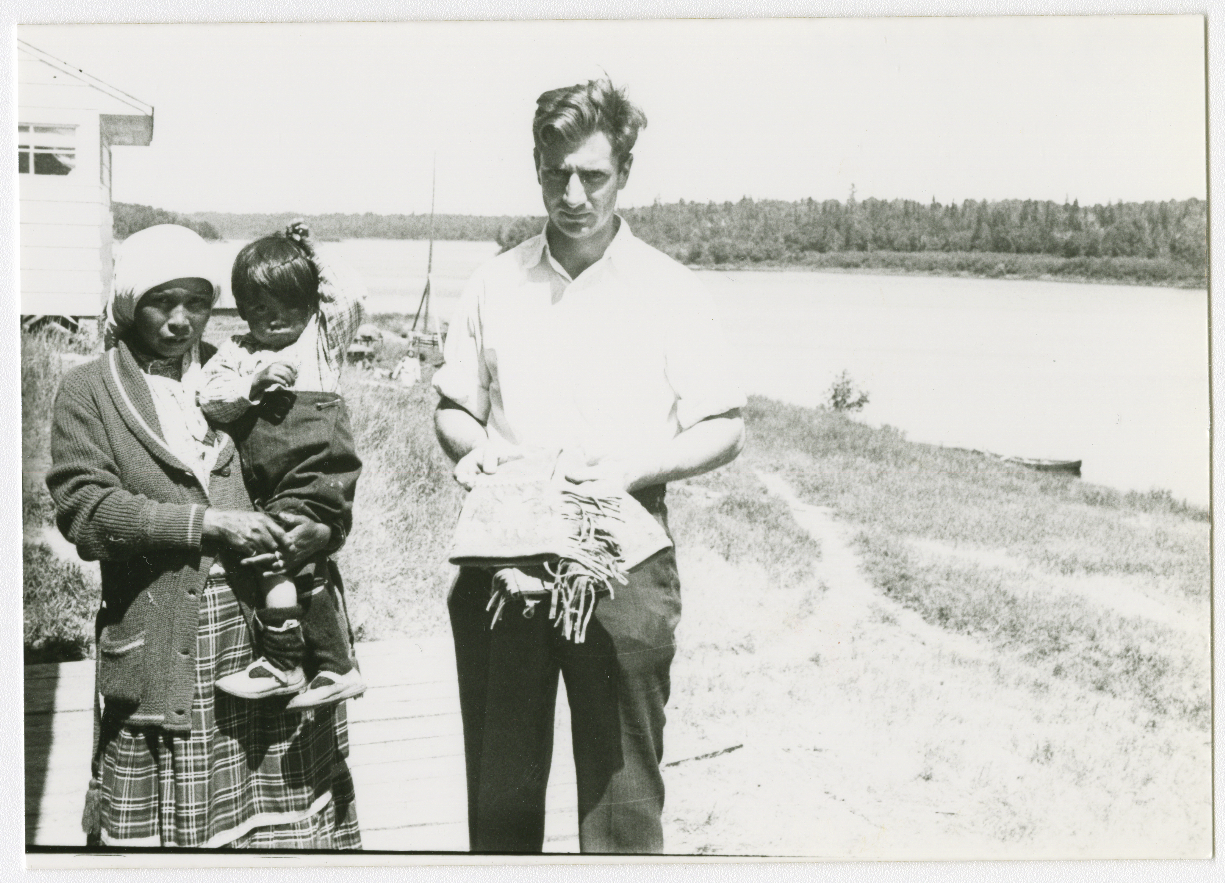 - Mère avec son enfant et un homme qui tient une paire de gants traditionnels