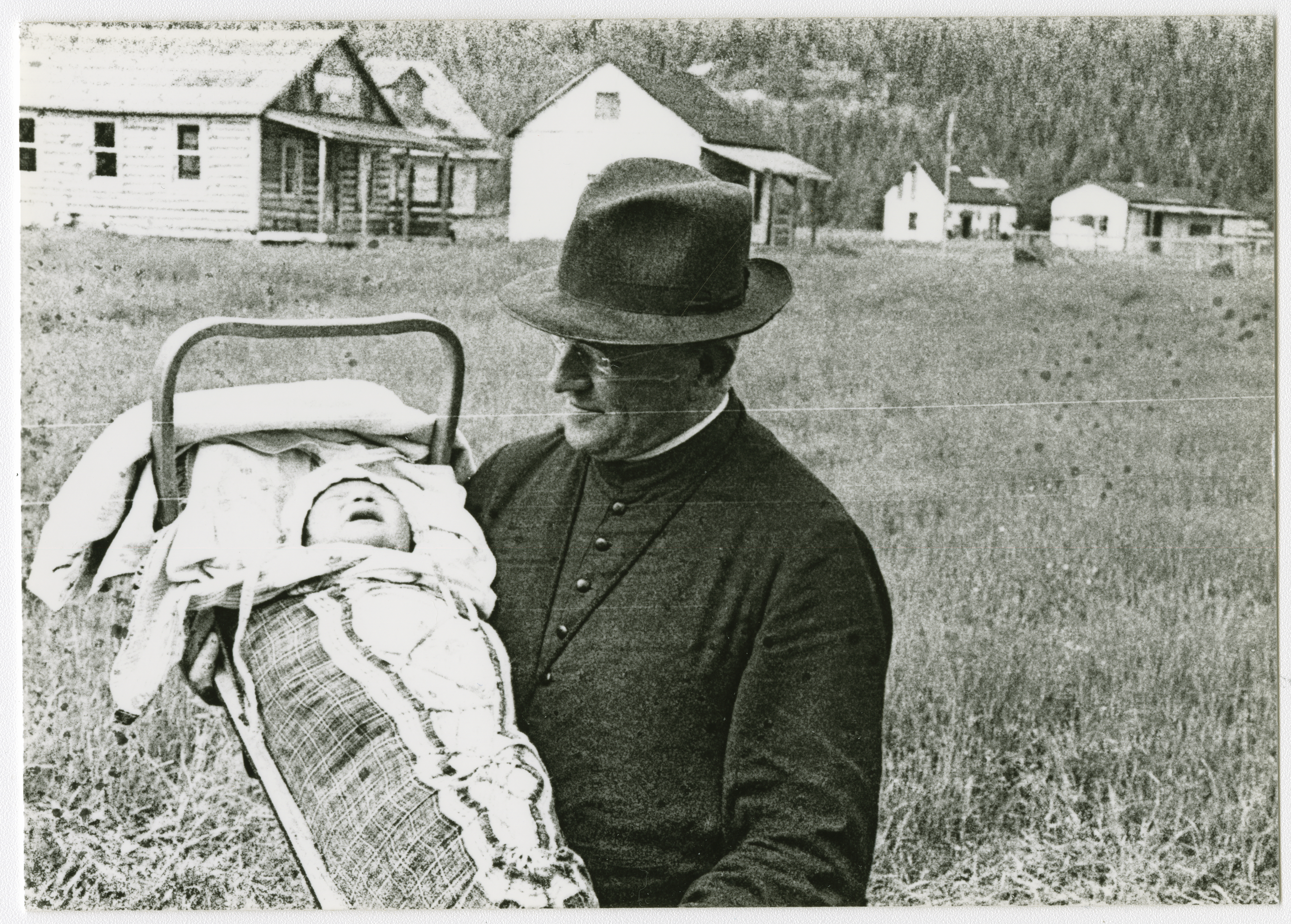 - Un homme d’Église et tiens un bébé avec un port-bébé