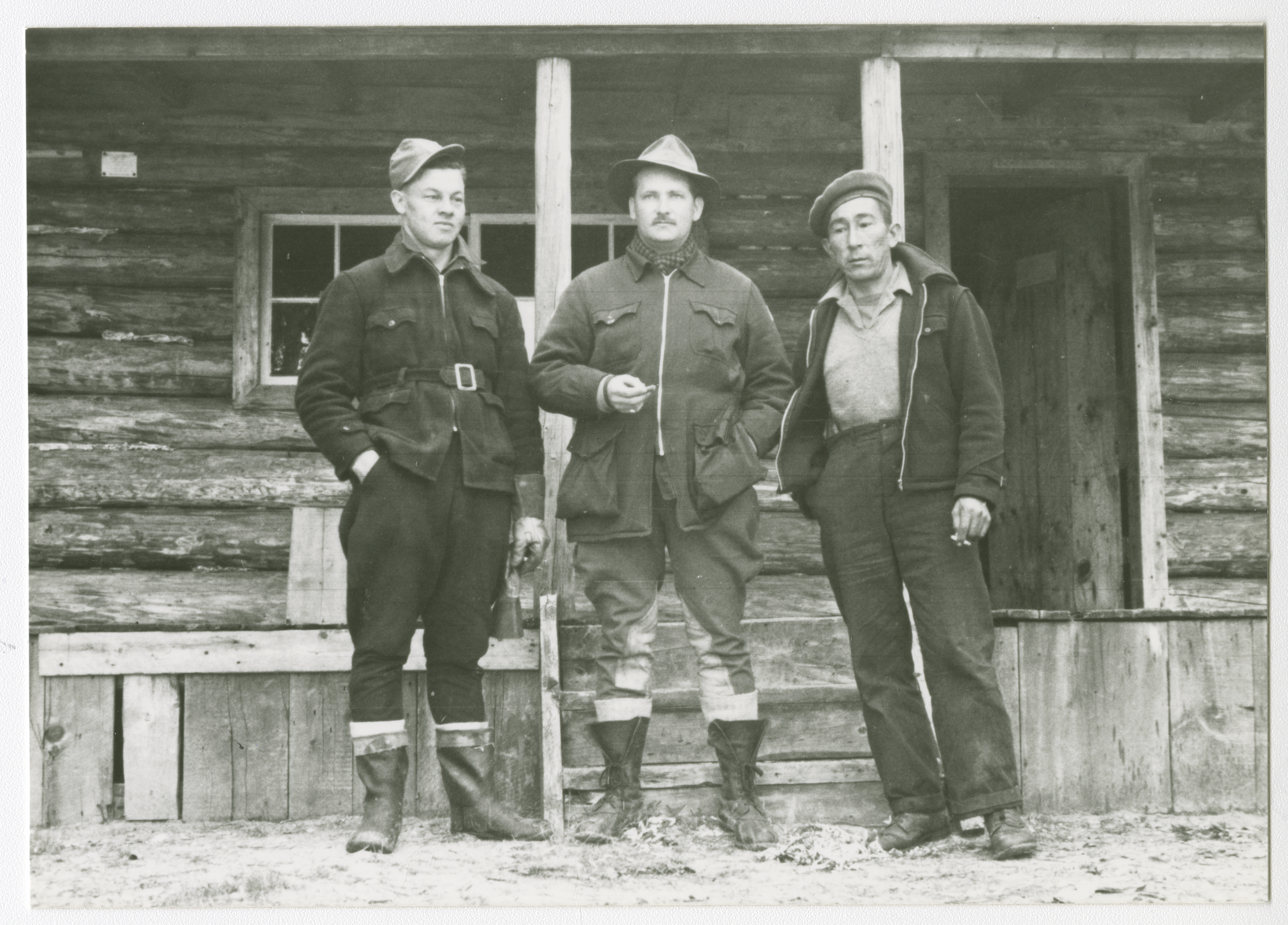 > Résultats de recherche > Trois hommes en avant d’un bâtiment